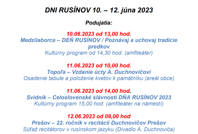 Deň Rusínov 2023 – Poznávaj a uchovaj tradície predkov